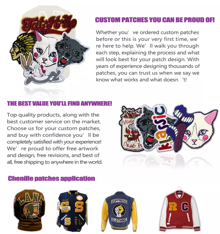 Styles: | Fabric(twill), full(100%) embroidery patch, felt, chenille, woven patch, woven label, and silicone patch |